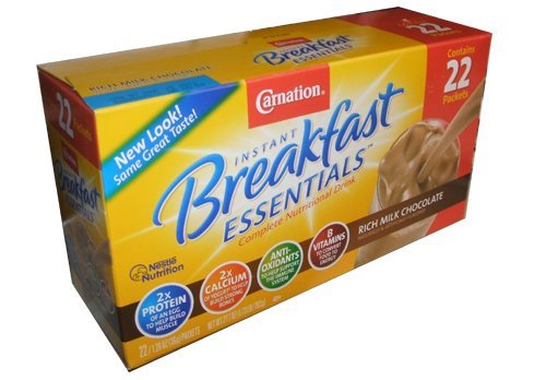 CARNATION INSTANT BREAKFAST Powder Drink Mix is the tasty way to get complete, balanced nutrition that jump-starts your morning. Mix it with milk or prepare a delicious, energizing smoothie - the possibilities are endless!**** Serious morning fuel, at home or at the office: in the morning or for an afternoon pick-me-up. In todays hetic world, it can be a challenge to have a nutritious breakfast in the morning. You need quick and delicious ways to get the nutrition you need to start your day off right. That's why there's CARNATION INSTANT BREAKFAST with all the nutrition of a complete breakfast.**** Value pack with 22 packets of chocolate flavor mix. Complete nutritional drink